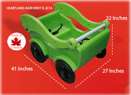 Manufactured in Canada, The Wagon can carry four sitting children. It's ideal for your home or for child care facilities. The Wagon is equipped with four pneumatic tires and an air chamber, making it easy to pull and a more comfortable ride for the children.